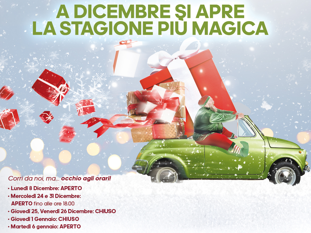 Lunedì 8 Dicembre, dalle 15:30, lasciati trasportare nell’atmosfera più magica dell’anno. Passeggiando per il parco scoprirai tutte le sorprese degli eventi itineranti gratuiti: un percorso